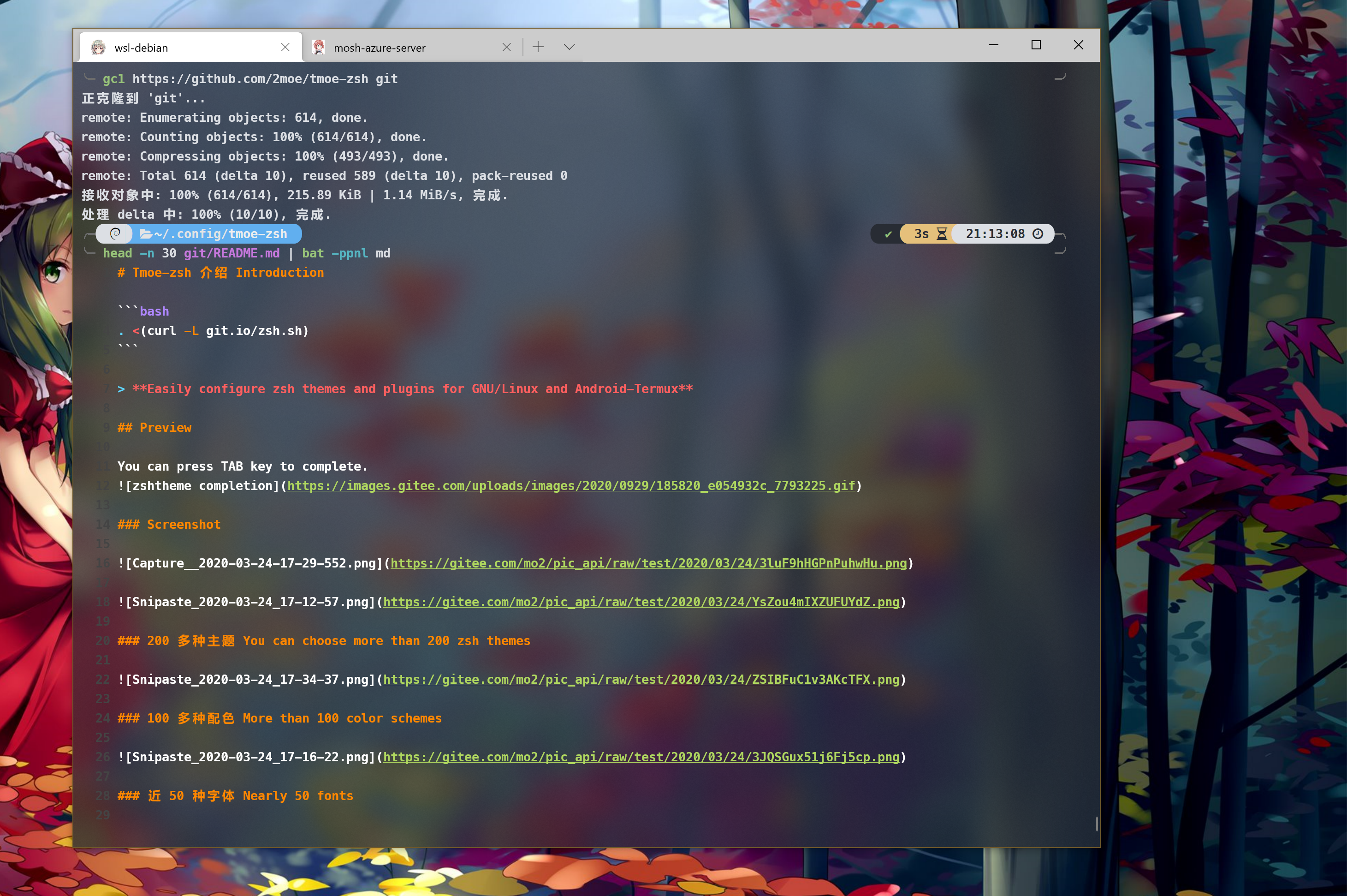 bash ${TMOE_ZSH_GIT_DIR}/zsh.shIf you are using win10, then you can beautify windows-terminal.