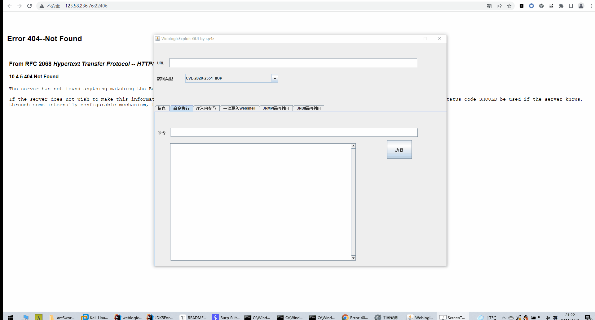 - T3和IIOP类型漏洞通过绑定RMI实例实现命令执行