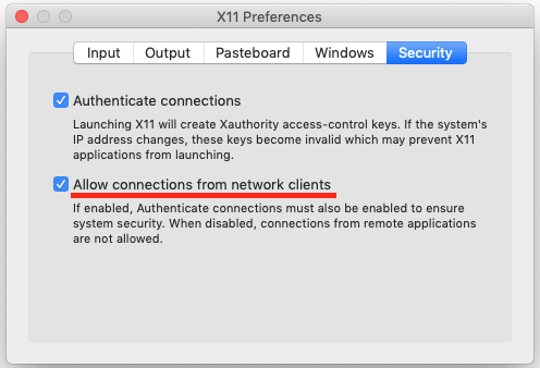 In the container, all dependencies are installed. However, you might have problems with plotting the data due to display forwarding. To make it work (for Mac, not Windows, for Ubuntu see below) make sure that XQuartz is running and connection from remote clients is allowed: