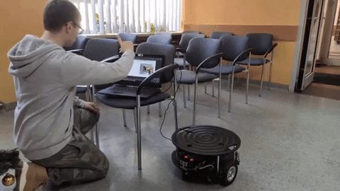 The purpose of this project was to build a system that allows user to control the Arlo mobile robot using static hand gestures, with use of camera. The project consists of three parts, the first was to develop script that supposed to recognize the gestures controlling the robot. For this purpose author used convolutional neural network, which had to be properly trained. The next step was to create a robot program that had to properly react to application commands. The last step was to handle communication between programs, Bluetooth 4.0 Low Energy standard was used for this purpose. Unfortunately, during the final control test Bluetooth module has been damaged, in this case the author decided to use simple serial communication instead. The main assumptions of the project were to achieve real-time processing system and achieve high accuracy of hand gesture recognition.