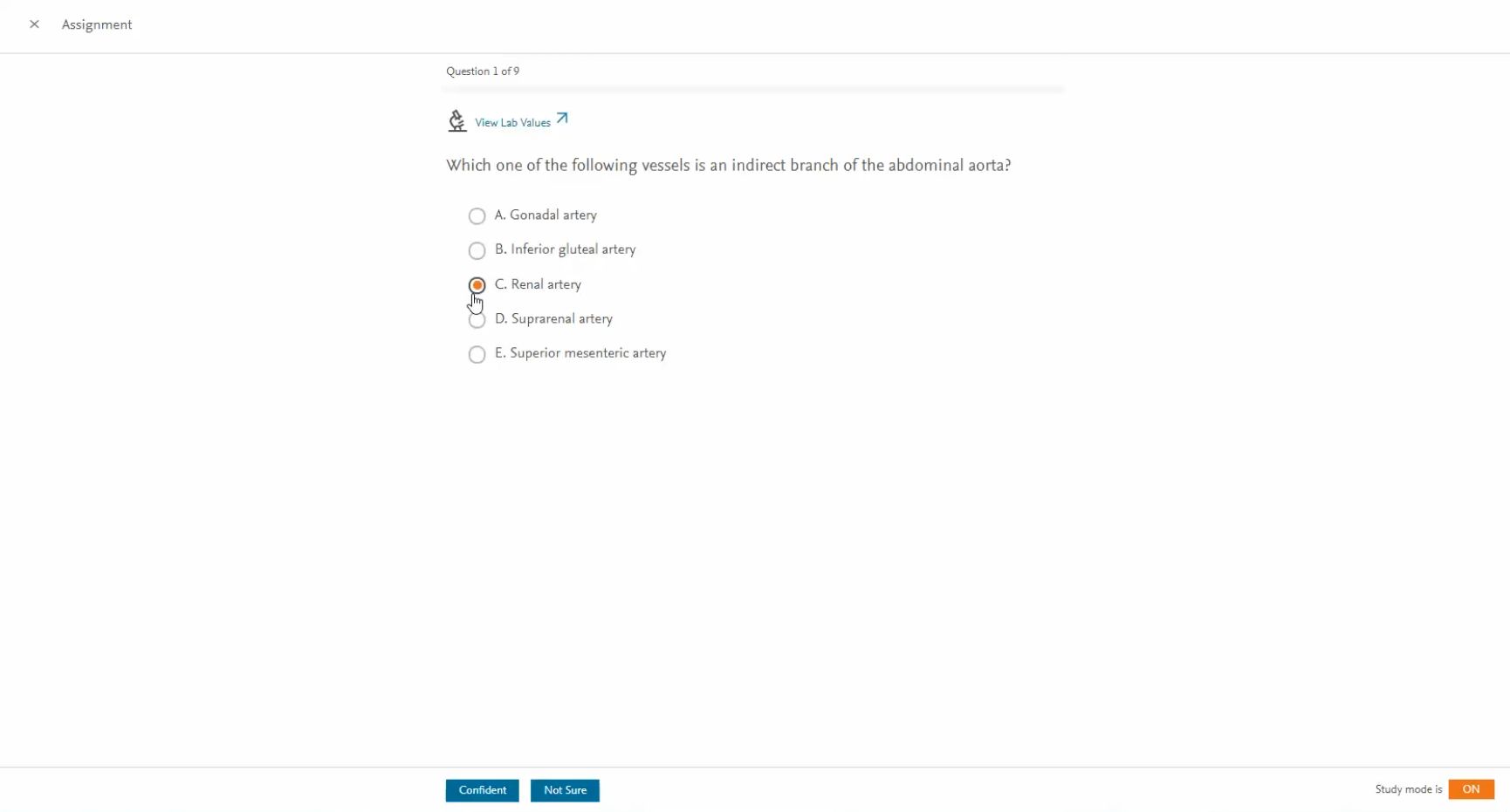 Confident button and not sure B]button are displayed at the bottom of the page for the user to submit their answer. Which is clicked is recorded for their results.