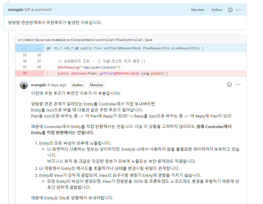 Plan과 Reply의 연관관계
