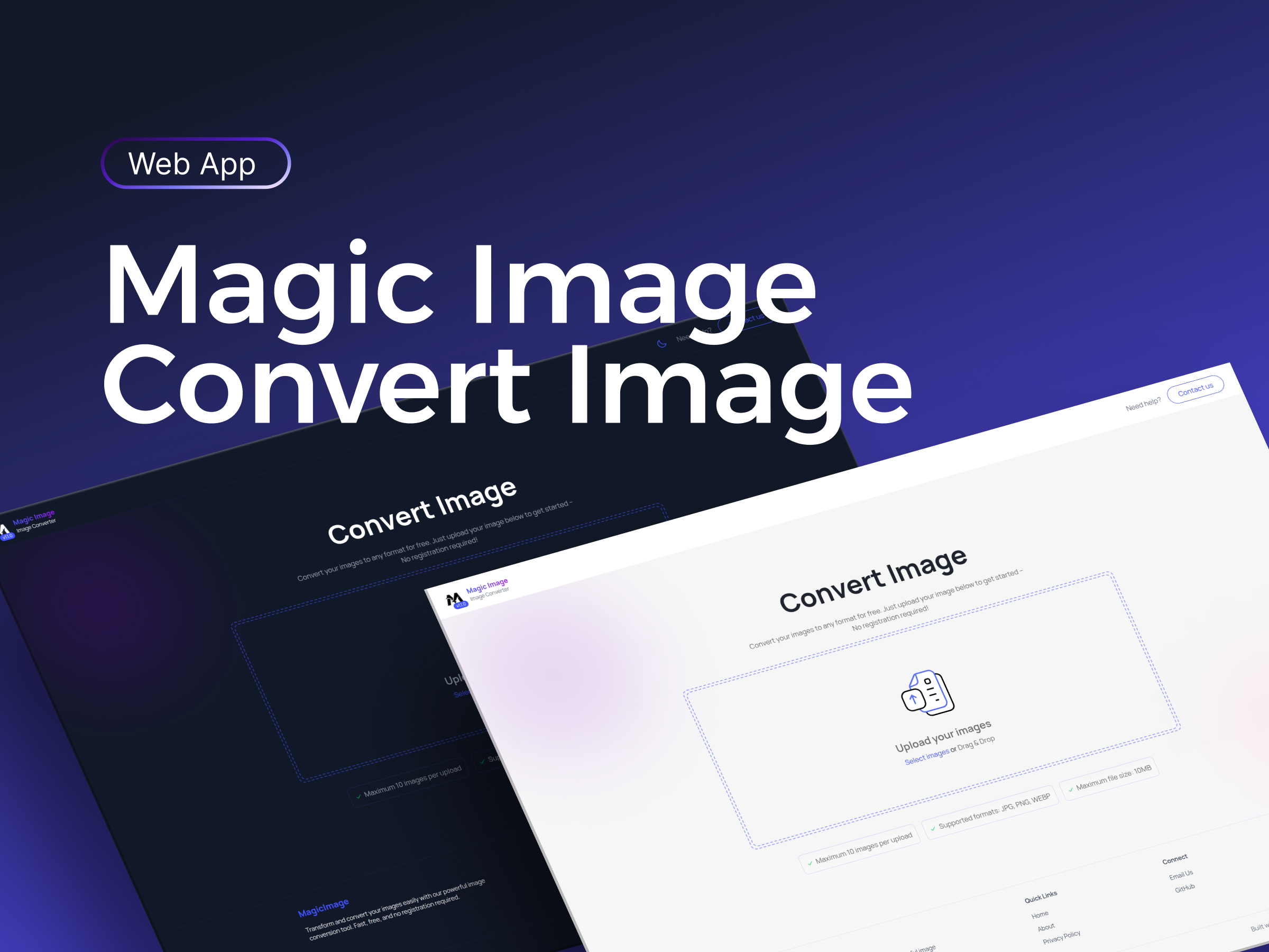 Magic Image adalah aplikasi web ringan berbasis Next.js yang memungkinkan pengguna untuk mengunggah berbagai format gambar dan mengonversinya ke format WebP yang lebih ringkas dan cepat.