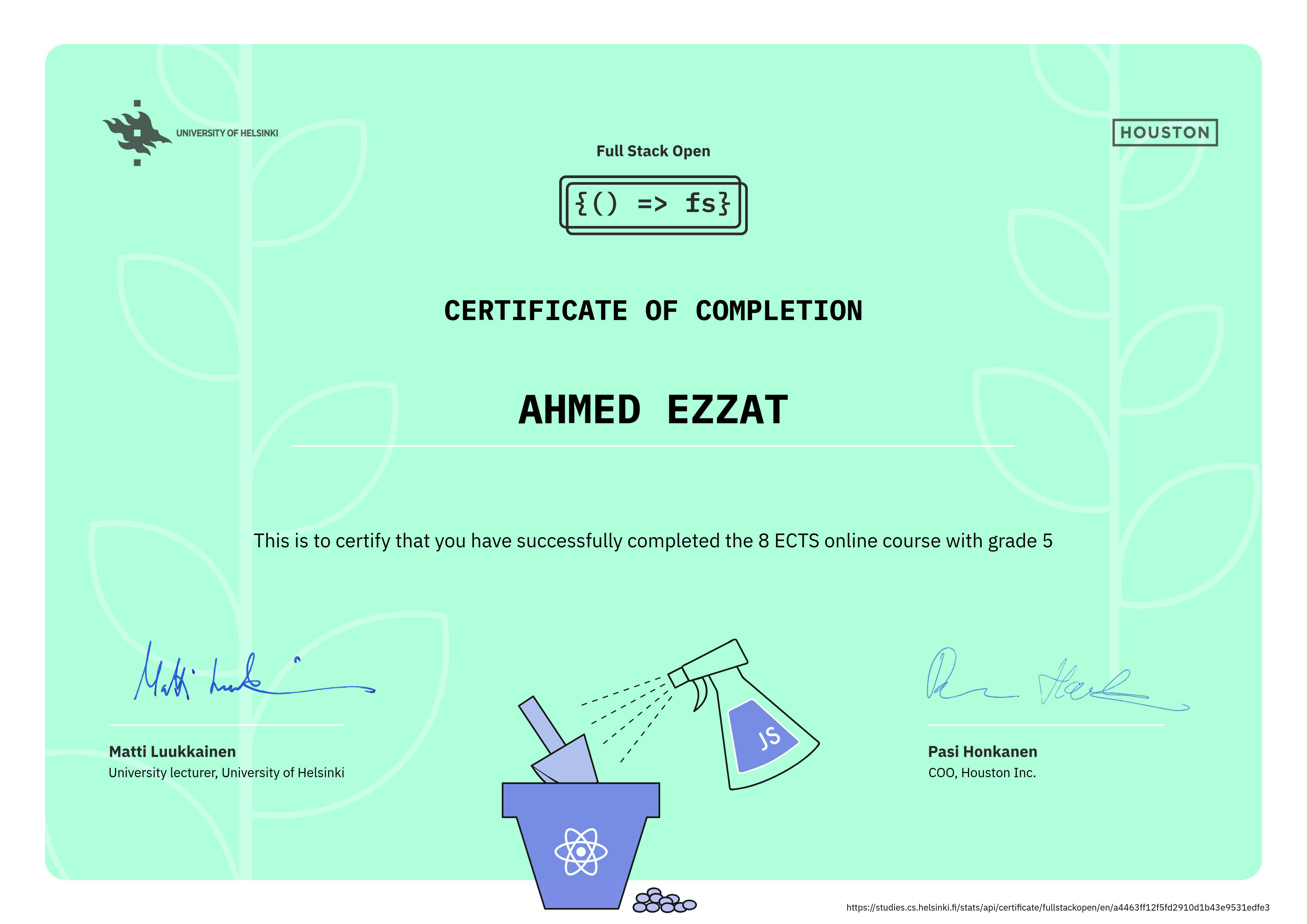 Repository for submitting exercises and projects for the Full stack open 2020 by university of Helsinki