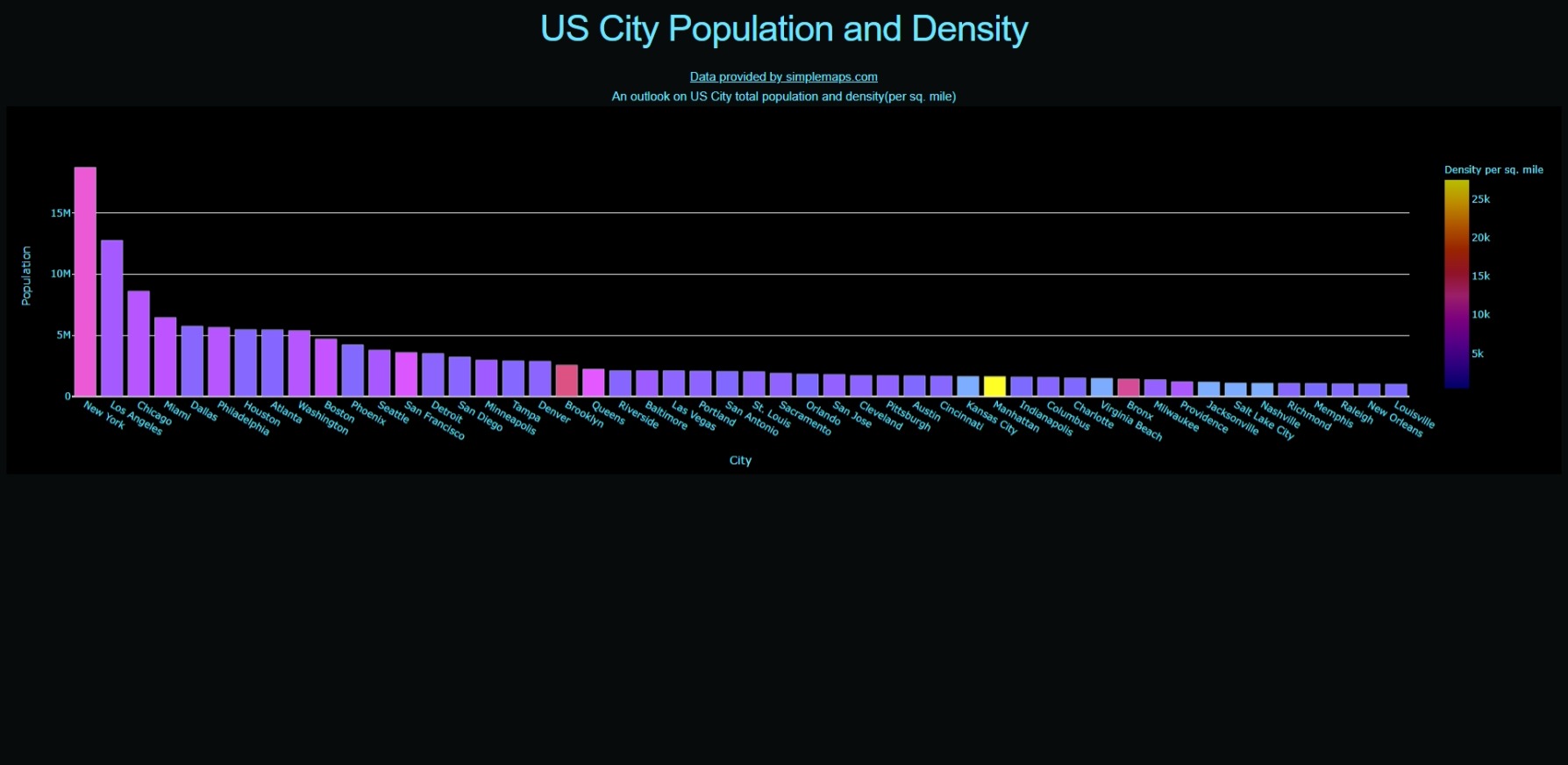 Beginner Dash application that runs on top of Flask, React and Plotly. Used to display population data for US cities from a population dataset.