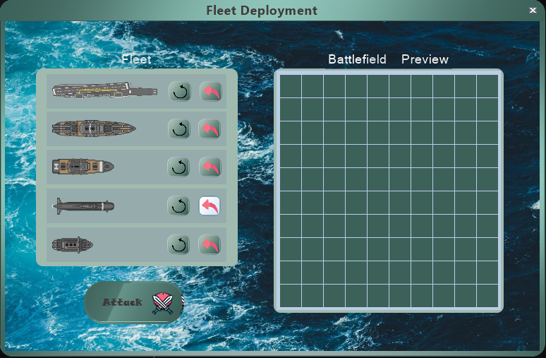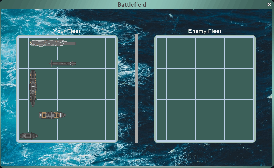 - ⚔ Customizable Battlefield – Players can adjust the battlefield grid the way they want, with each ship placed in any cell with the orientation the player wishes it to have.