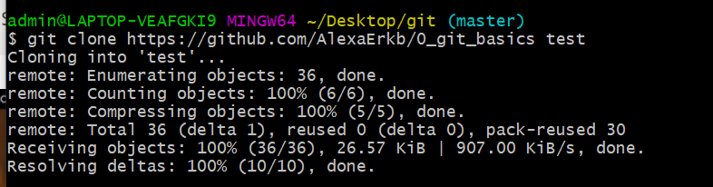 - Склонировать созданный удаленный репозиторий в директорию ~/git/test
