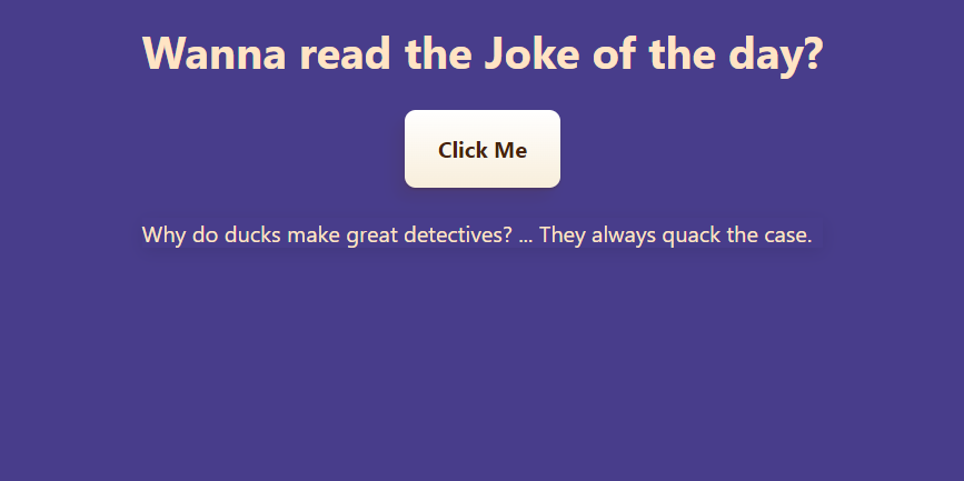 Jokes API Data-fetching App Demo Link: Link Key Features This app is created with: ReactJS 18.2 Axios version: 1.2.1 Acknowledgment This app is based in the "How To Make An API Request in ReactJS With Axios and Fetch" video tutorial from PedroTech License MIT