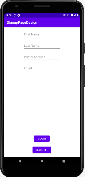 This application includes the practice of layouts. In this app, there are two different activities one for register user and one for login user. On clicking the button respective activity is shown at mobile.