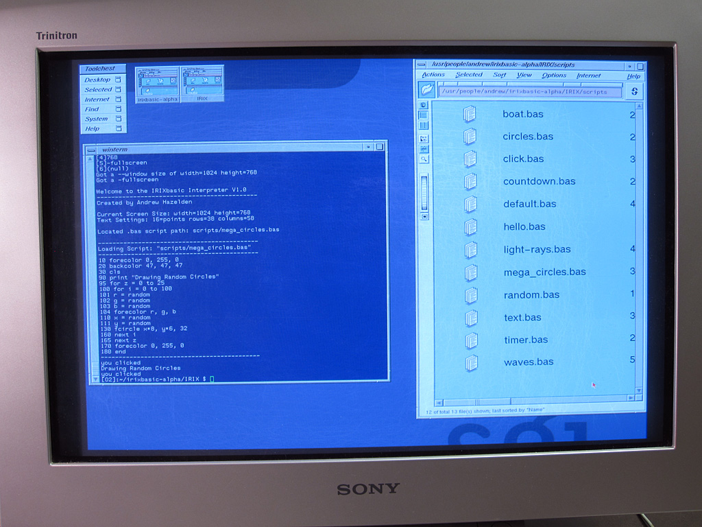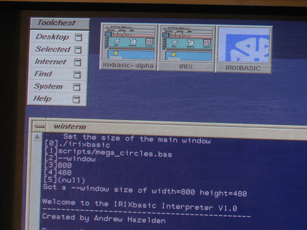 You can read more about IRIXBASIC on Andrew's blog: June 31, 2012 Now Presenting IRIXBASIC
