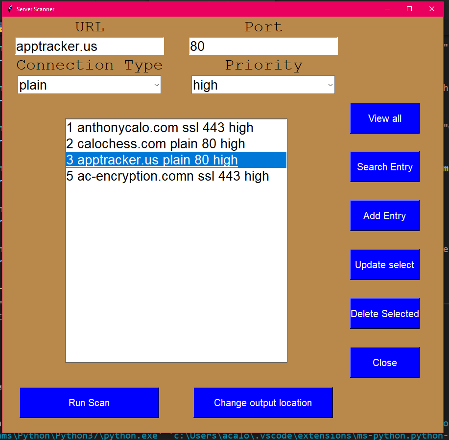Once you configure the output locations and server list with the gui. You can schedule cronjob for python to run CheckServer.py. The scans will be automated to run at custom time. If you configure email update you won't even need to check logs because you'll get emailed if a server is down