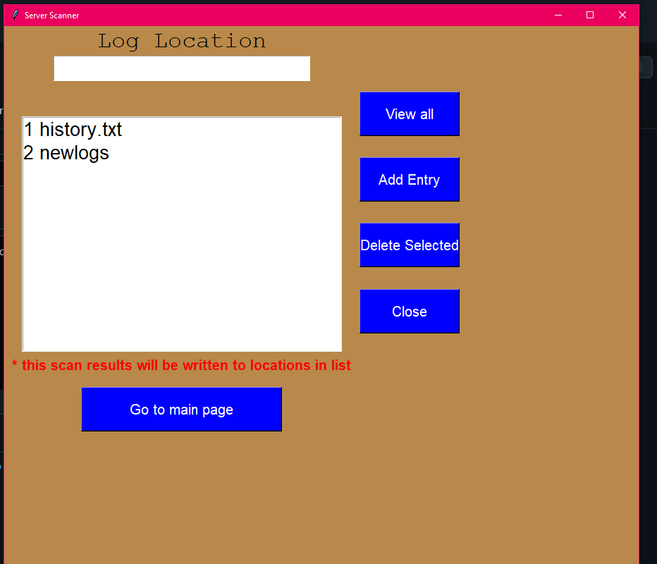 At this point press Run Scan and the application will scan the list of servers and write the results to the file locations listed. Example of the format below and in history.txt/ newlogs file in repo.