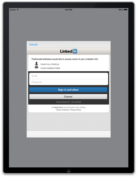 A small non intrusive library that makes it easy to authenticate and authorize against LinkedIn using OAuth2. The API uses a UIWebView to authenticate against LinkedIn.