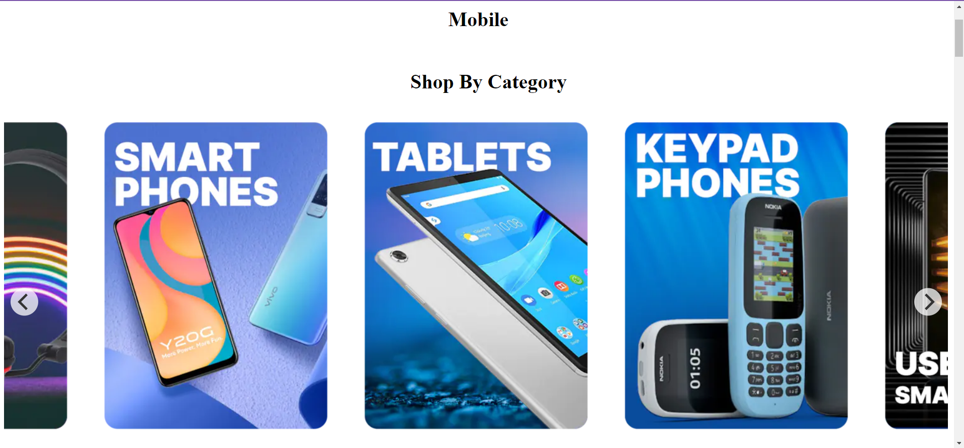 Product page shows you all category , sales, feature phones, and mobile accessories and all.