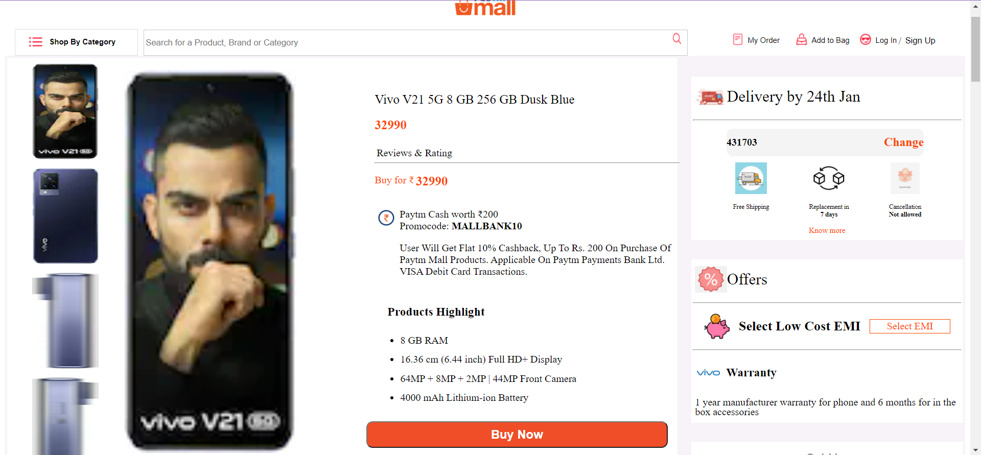Single Product Page Shows Product Details and proceed to payment.