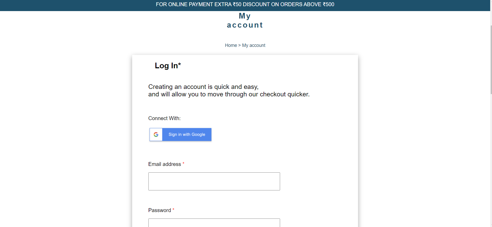 The login page show full functionality of page in which by giving your name or cellphone number you can login to website.