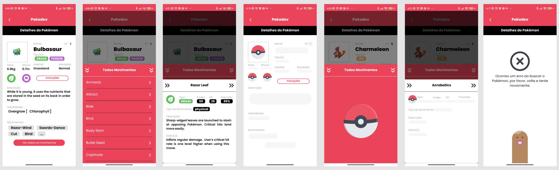 O projeto PokeDev é um aplicativo mobile que simula uma pokedex do jogos e anime Pokémon.
