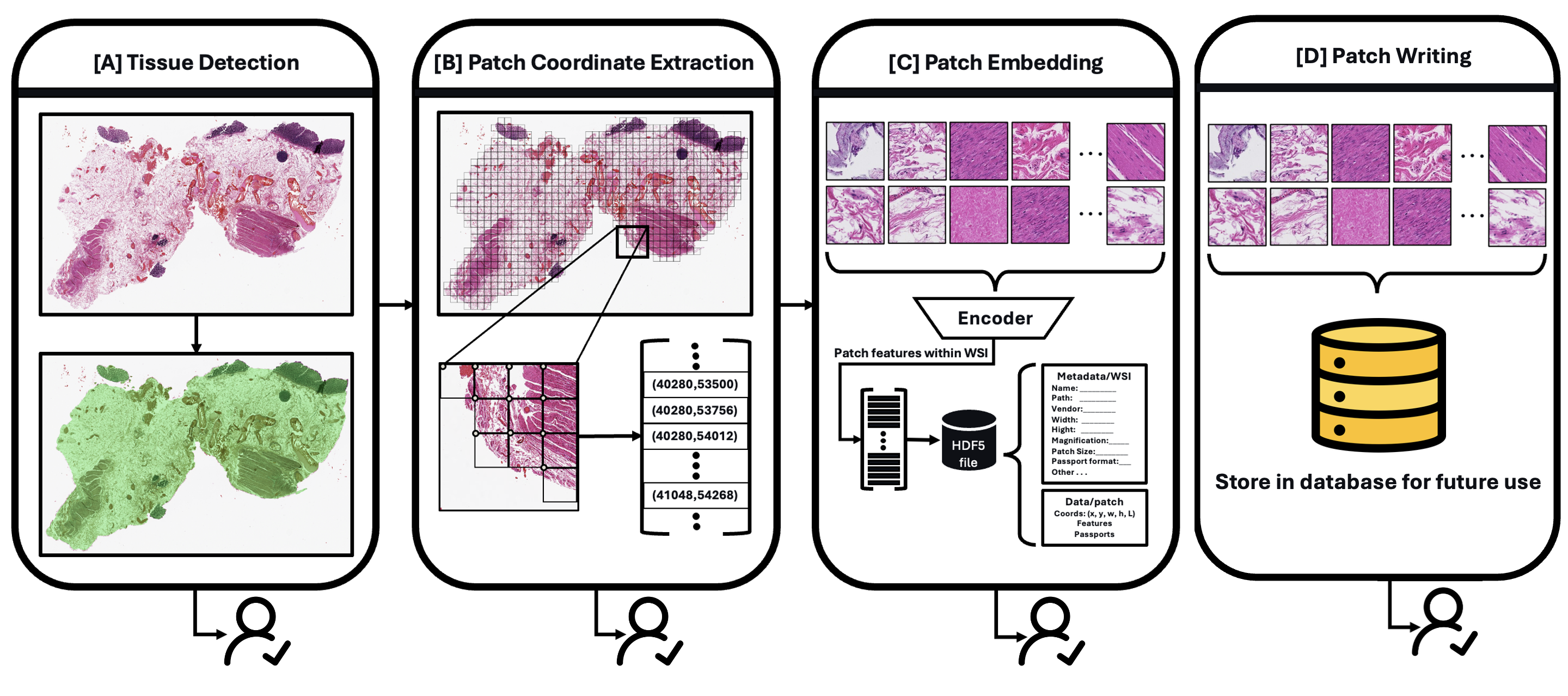 - Patch extraction (SAM2 + H5/PNG):