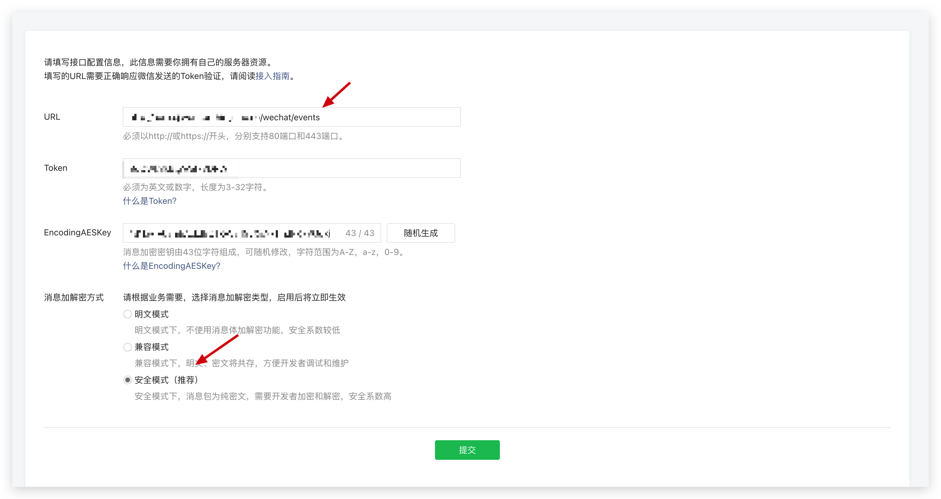 : EncodingAESKey configured in WeChat Public PlatformsubscribeMessage