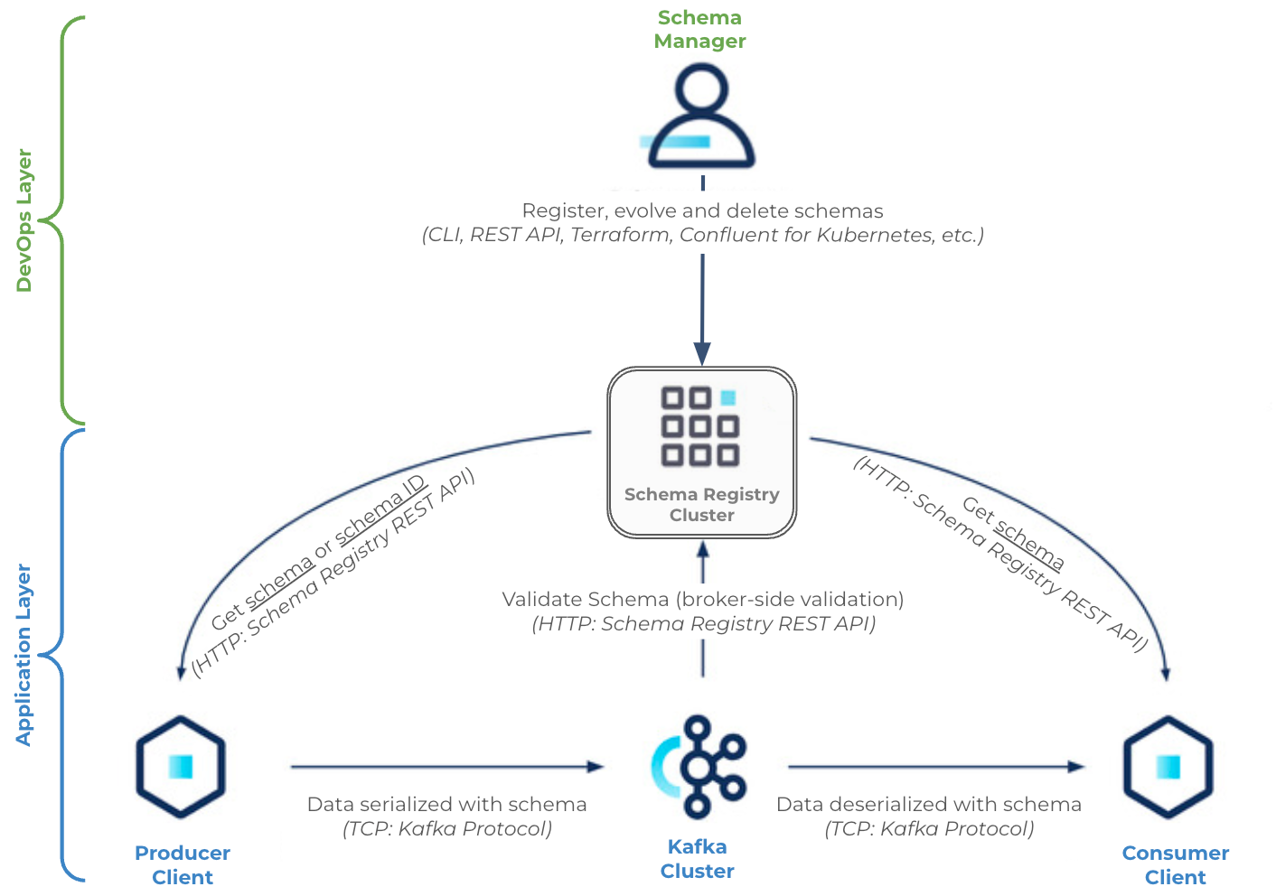 Producer Registration : Before sending data, a producer checks if its schema is already registered in Schema Registry. If not, it registers the schema and receives a unique schema ID.