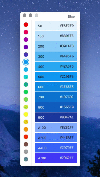 To test react-native-desktop and also MaterialColorsApp is OS X only so why use Electron ? This resulted in a ~114 Mo app vs ~2.5 Mo for this native one.