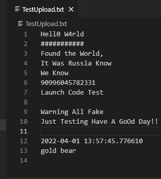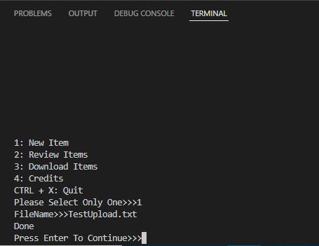 After selecting a username enter "1" on the menu to create a new file. Make sure to have a test.txt file ready to make sure of no errors -