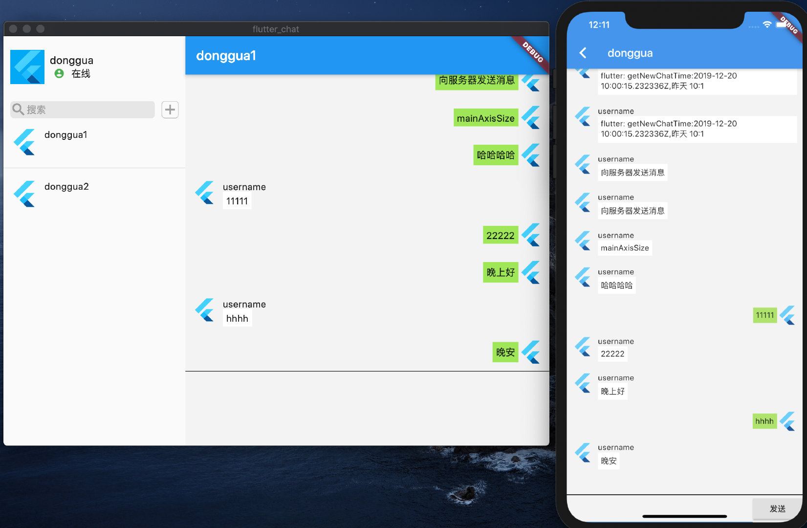 - 开发过程中需要两个客户端进行聊天的聊天,使用两个android studio模拟器的话,电脑简直卡飞天了。所以就使用Flutter开发的Desktop客户端来进行调试。反正基本上就是一套代码,然后自己做下desktop端和app端的屏幕适配就行了。