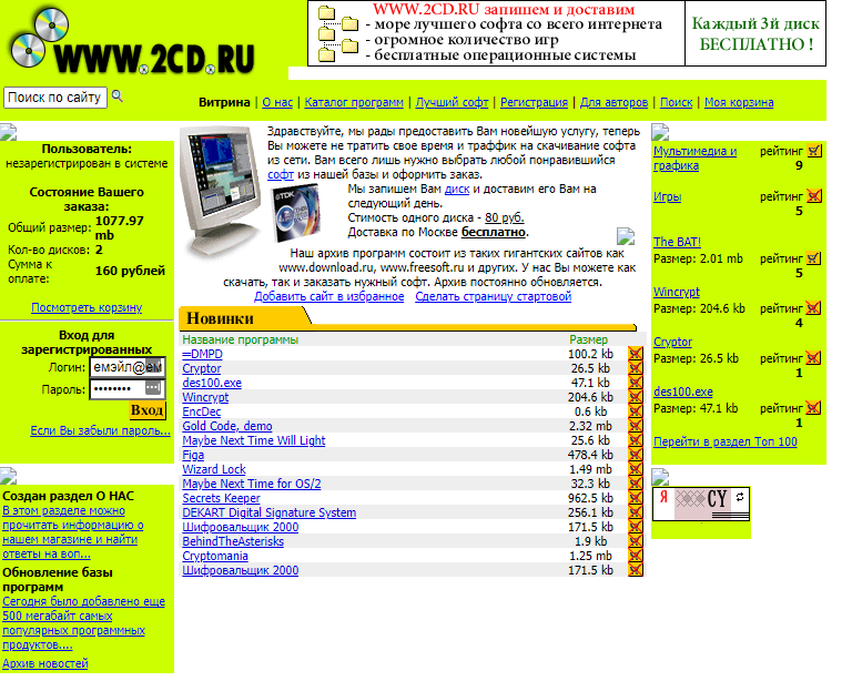 - 2cd.ru - интернет-магазин по продаже CD-дисков с самостоятельным формированием контента.