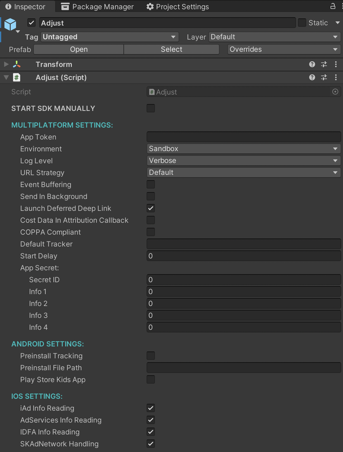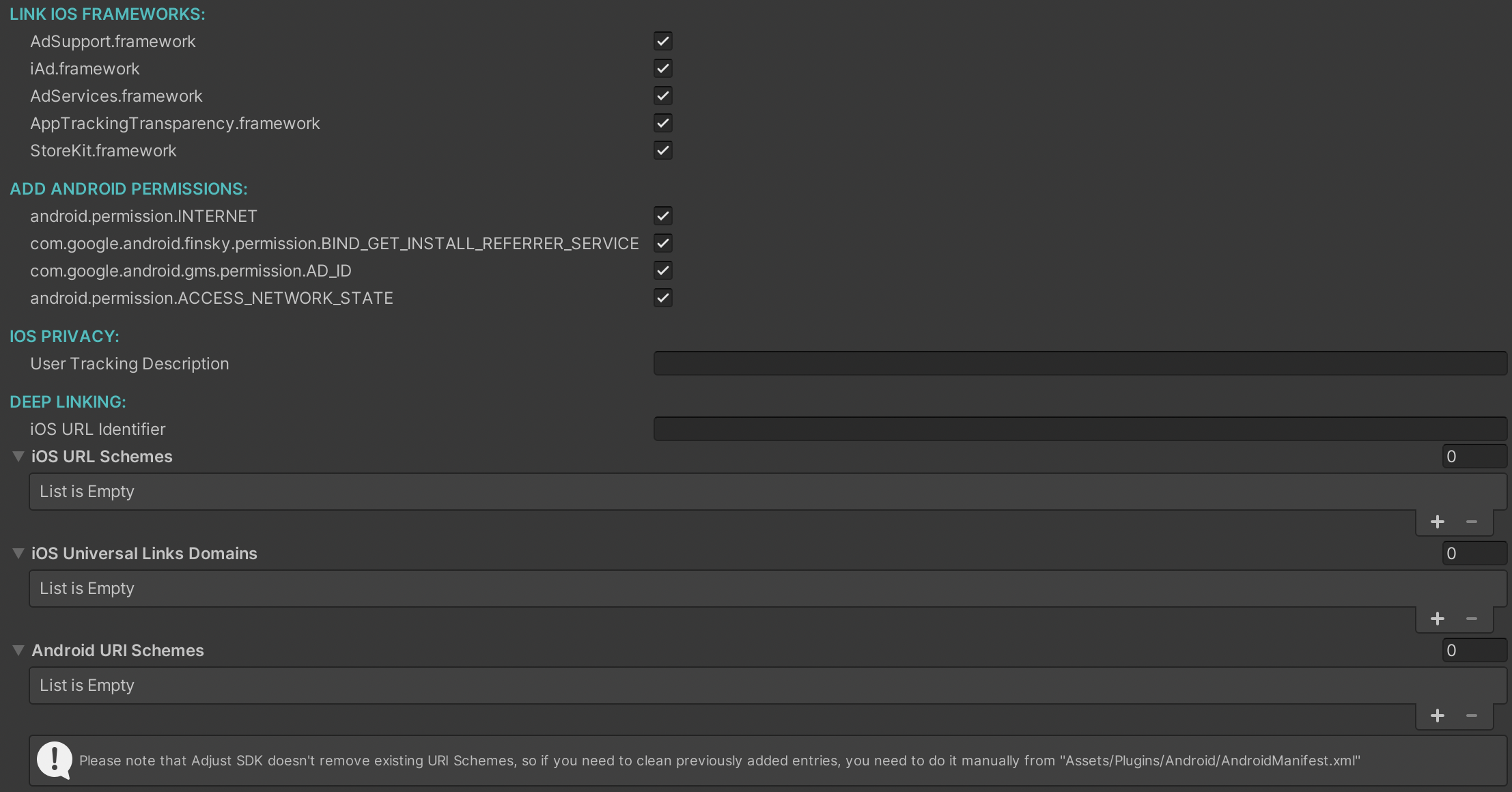 Note: As of version 4.21.0, Adjust Unity SDK is compatible with Unity 2017.4.1 and newer versions.