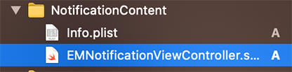 - Delete MainInterface.storyboard and NotificationContent.swift files. Then create a swift file named EMNotificationViewController under the NotificationContent folder.