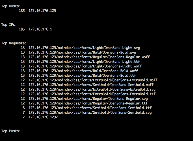 Provides a sorted output of the clear text requests coming to port 80 using tcpdump capture.