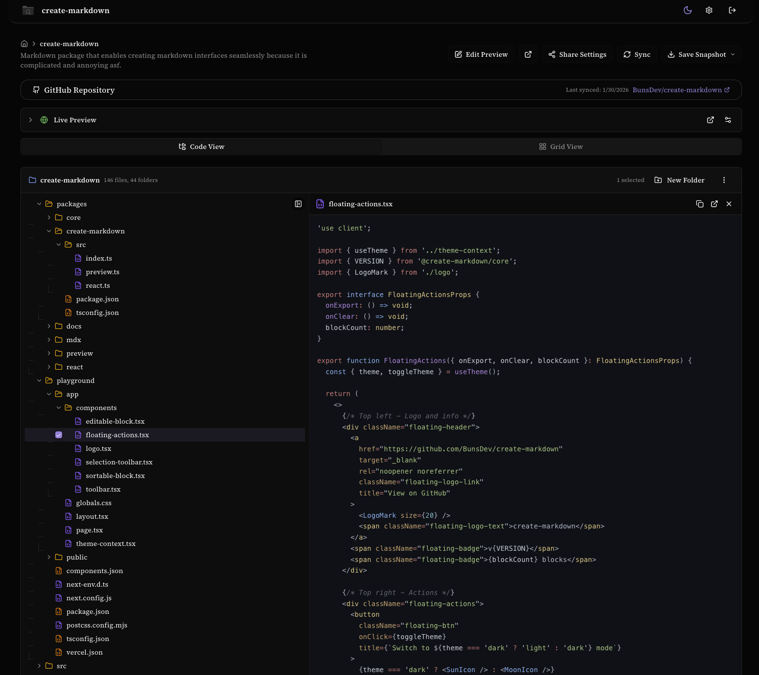 View source files directly in the browser with full syntax highlighting. Navigate through your project's folder structure and preview code without downloading.