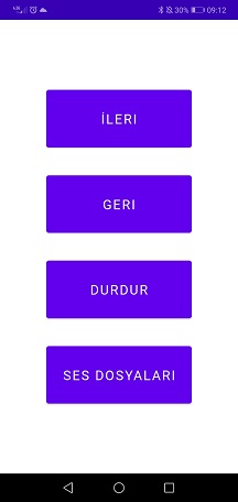This is the mobile application we made it in Turkish. The texts inside the buttons mean respectively: Forward, Backward, Stop, Sound Files