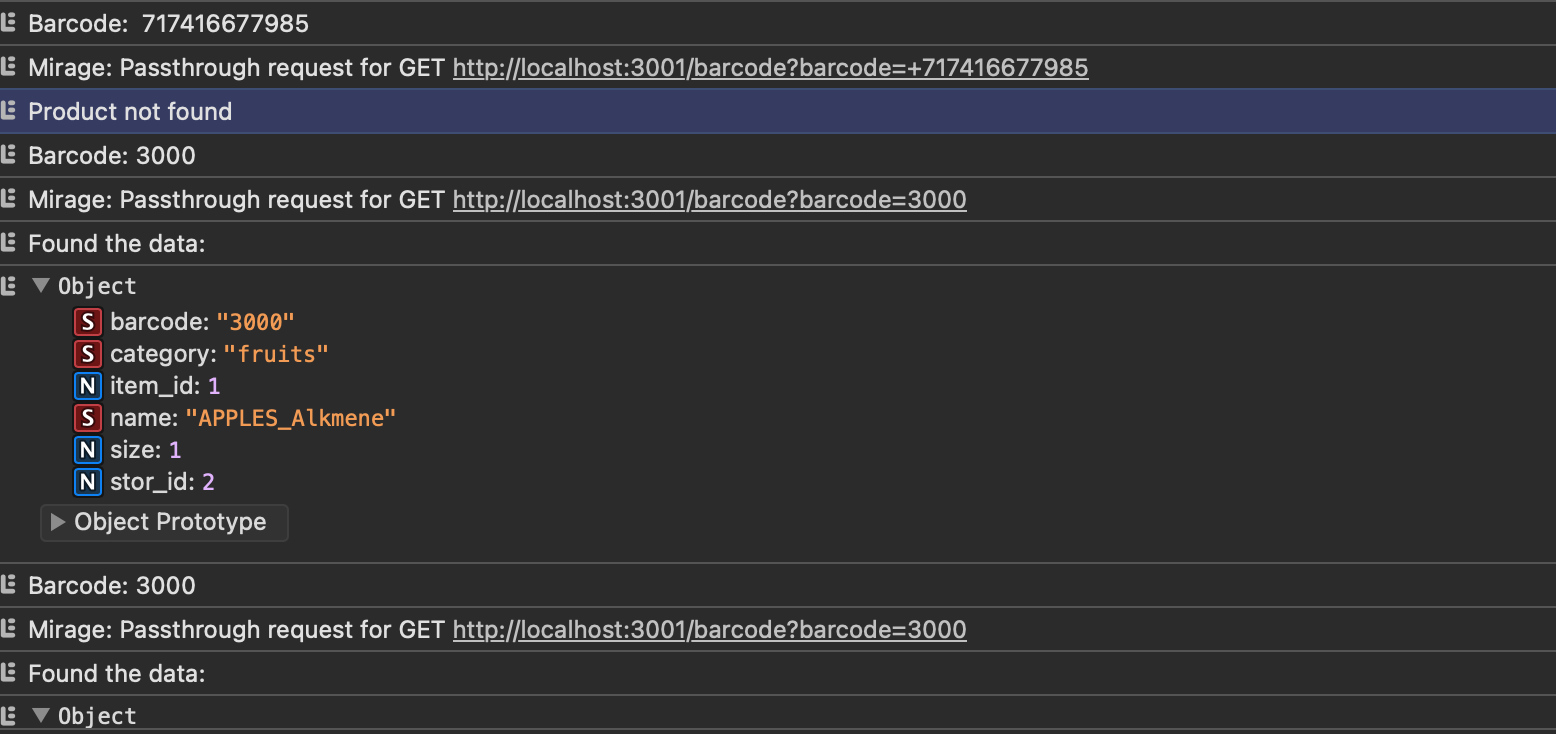 The frontend barcode input form is confirmed to talk to the backend, this PR resolves subtask 1, 2, and 4 for #174. Another PR will be open to complete the SKU Lookup Feature Functionality. |