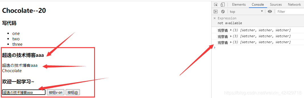 },最终,当我们更改 input 输入框中的值时,发现其他节点也跟着修改,这代表我们的数据进行了修改,相关订阅者触发了 update 方法,双向绑定功能实现!