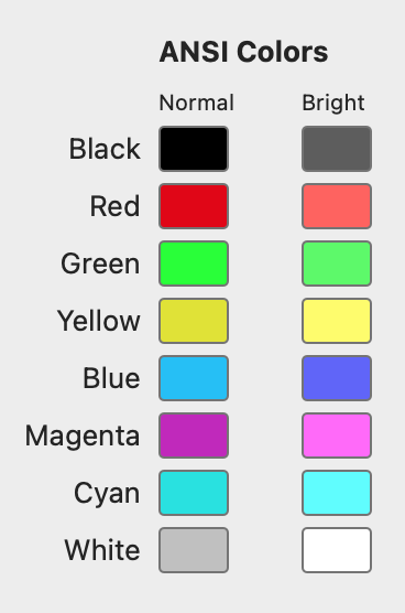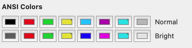 A color palette which shows and allows to edit the ANSI colors in terminal emulator. Similar to what is used in Terminal or iTerm