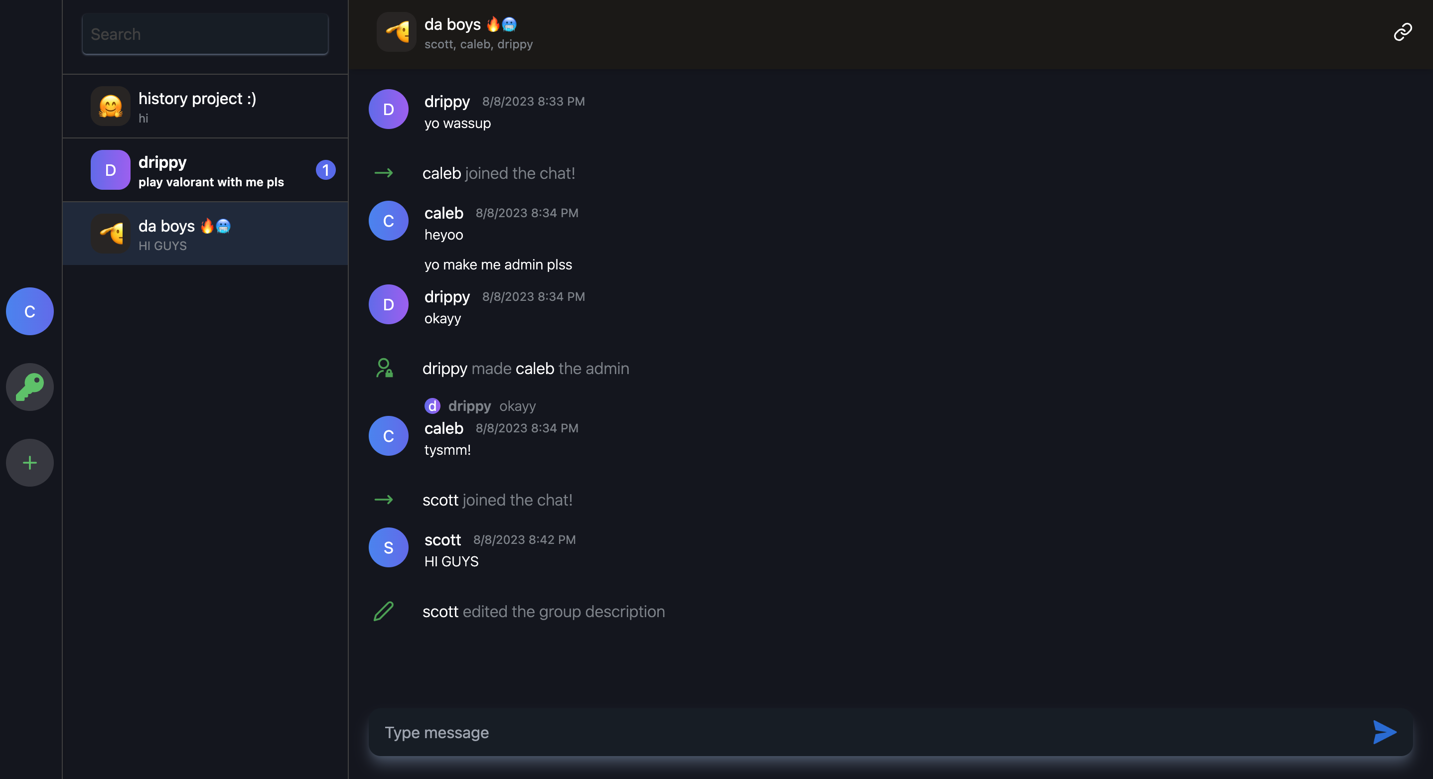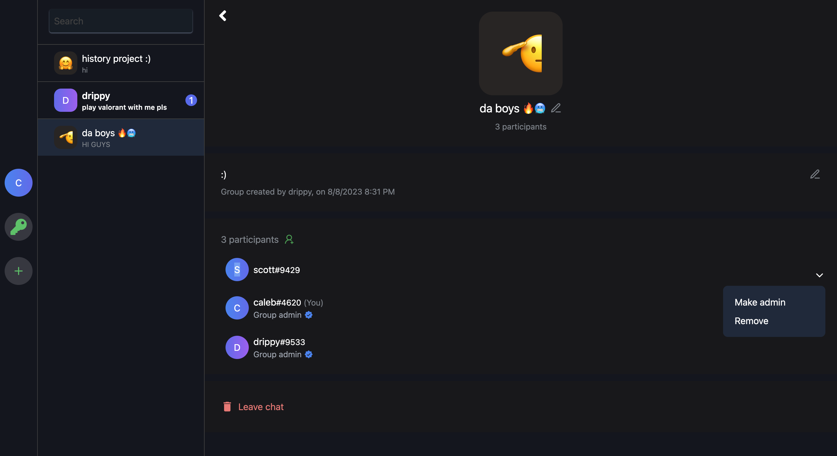 Group Admin Functionality: Empower selected users with admin privileges, allowing them to remove members, promote others to admin status, and manage the group's activities effectively.