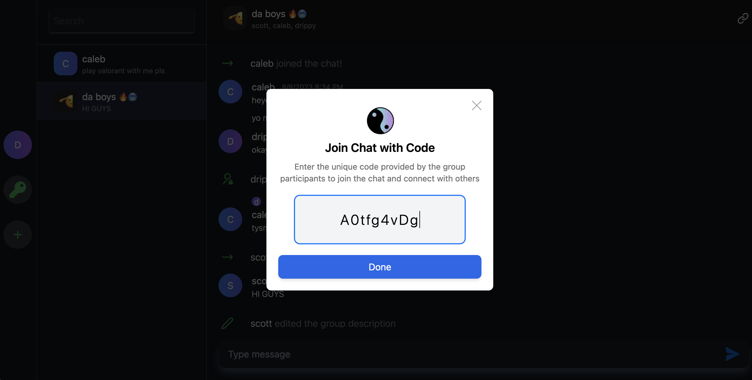 Discover a dynamic realm of real-time communication with our Chat Web App. Seamlessly join conversations, connect with others, and engage in interactive messaging like never before. This platform enables users to effortlessly join chats using unique chat codes, fostering a sense of community and ease of communication.