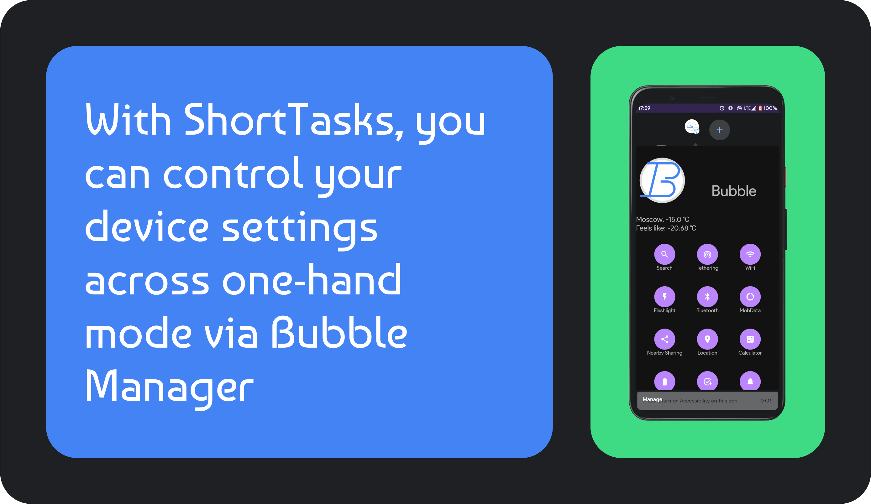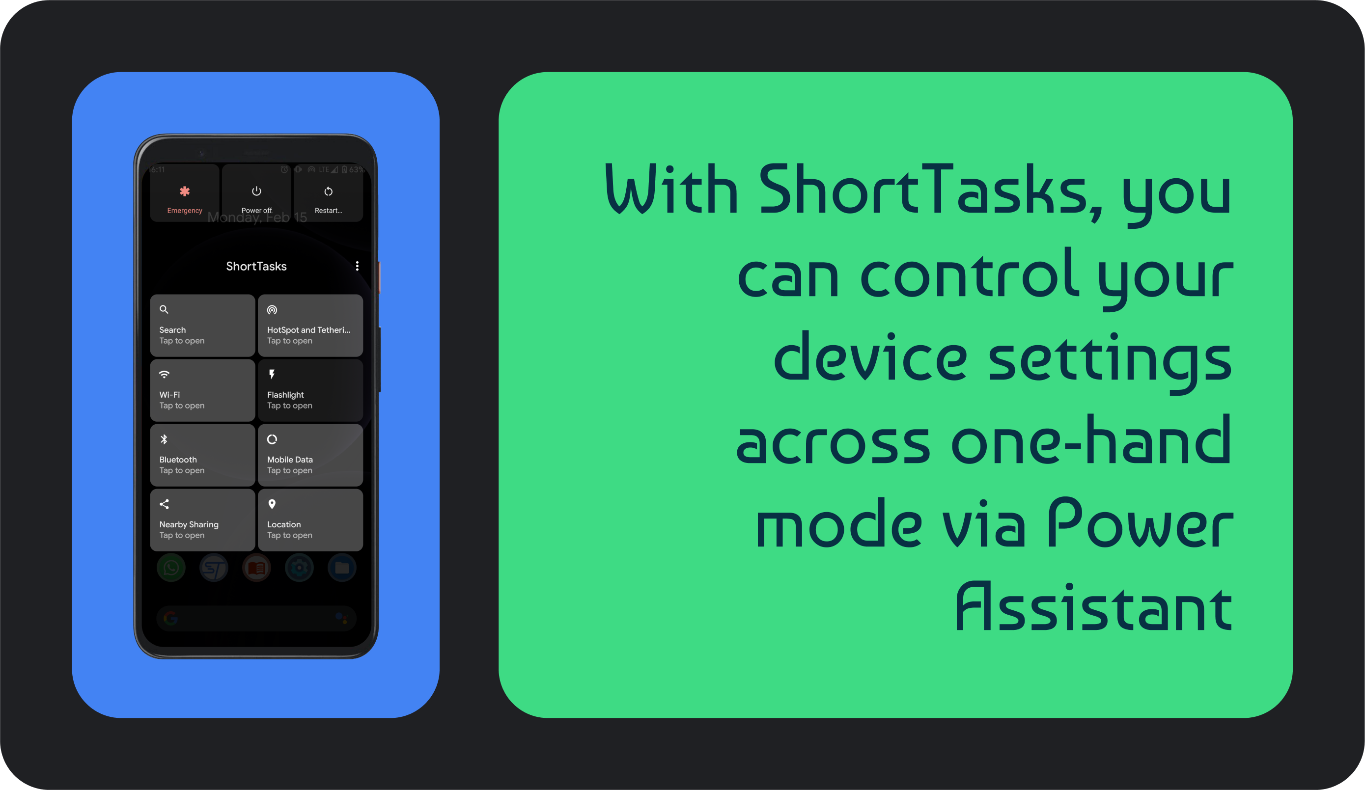 ShortTasks is app created to control your device with one hand. Nowaday most of phones has big screens. So if you have big screen is important for you.