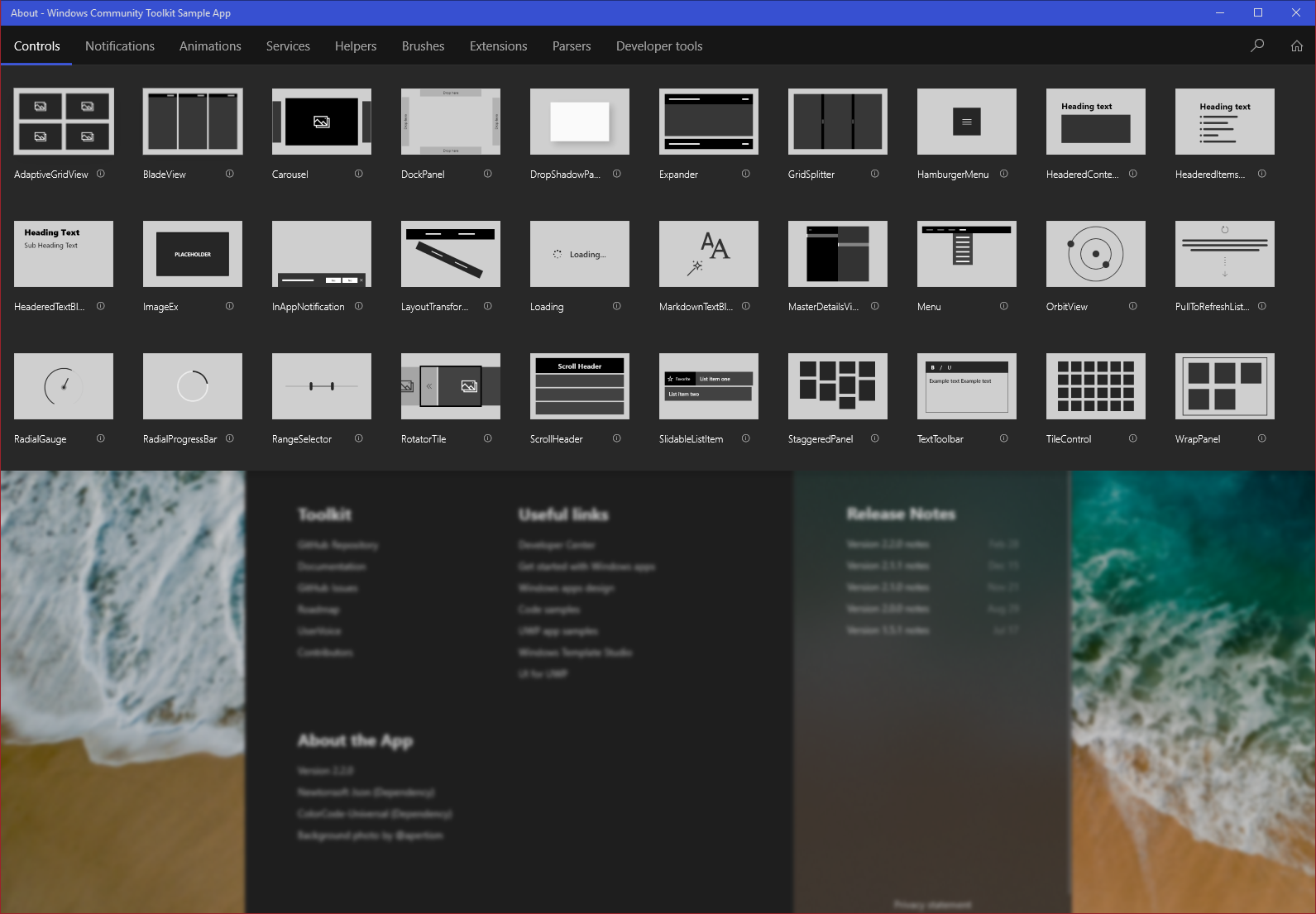 …ementExtensions, HamburgerMenu, HeaderedItems, ListViewBase. -Added SampleIconBacking to MoreInfoContent.