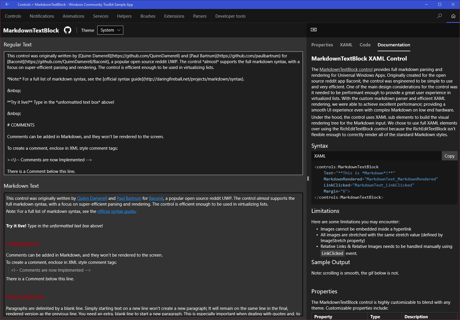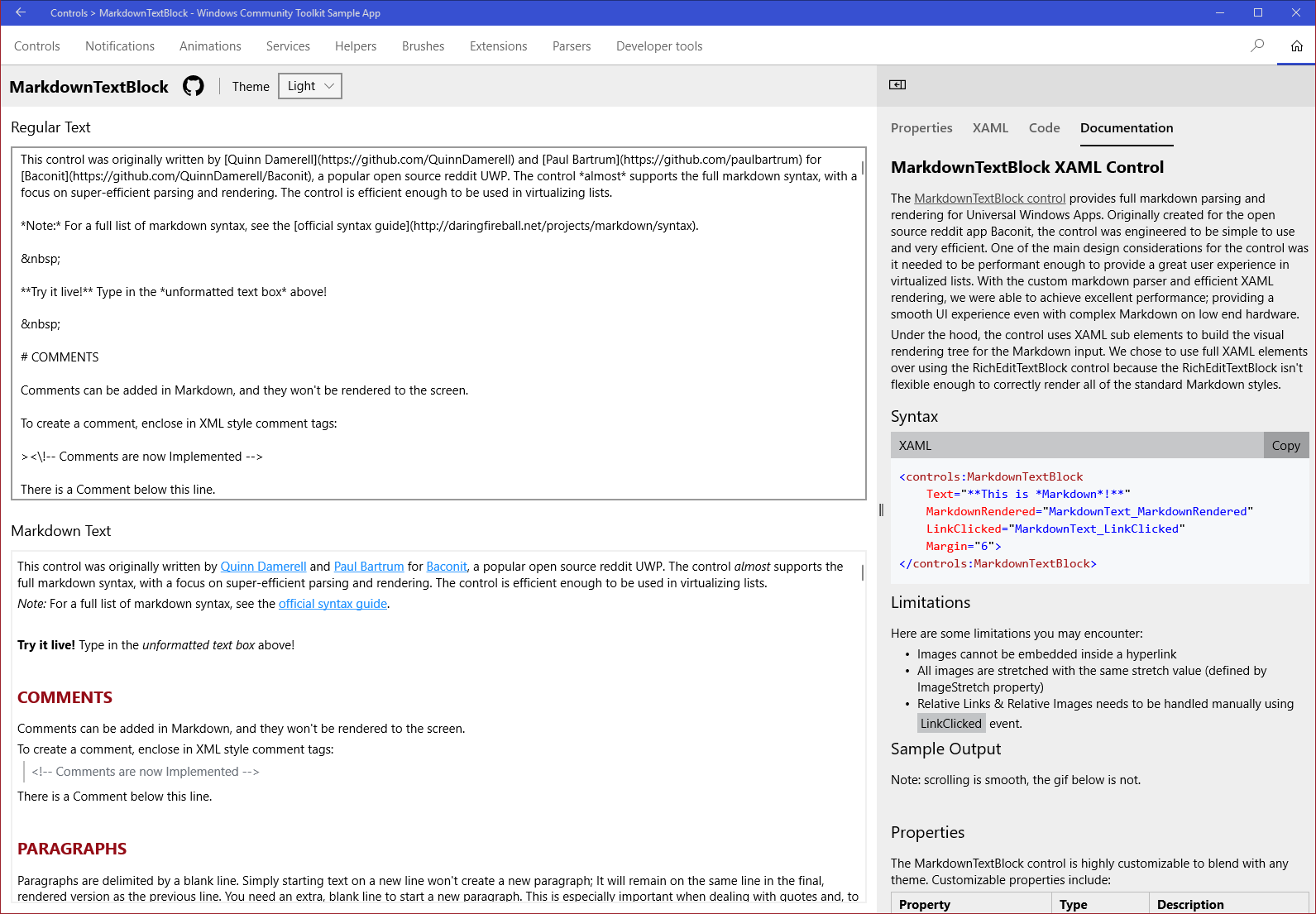 -Fixed SampleController Xaml Designer visibility. -Applied Background to Info Area uniformly (Transparent PropertiesControl and MarkdownTextBlock). -Broke several Visual States and functions in SampleController.