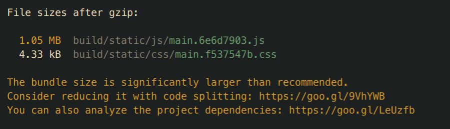 This is an issue when bundling up the frontend folder. In the attached picture, the bundle size is about 1MB which is much larger than recommended size.As a result, our website is slow. Obviously, the demo website performs a bit slow comparing to when running development mode. Switching pages and the animation in resources will show the issue.