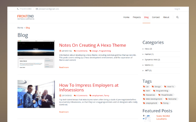 Hexo Corporate is a full-featured Hexo theme based on the Metronic Corporate Frontend freebie framework.