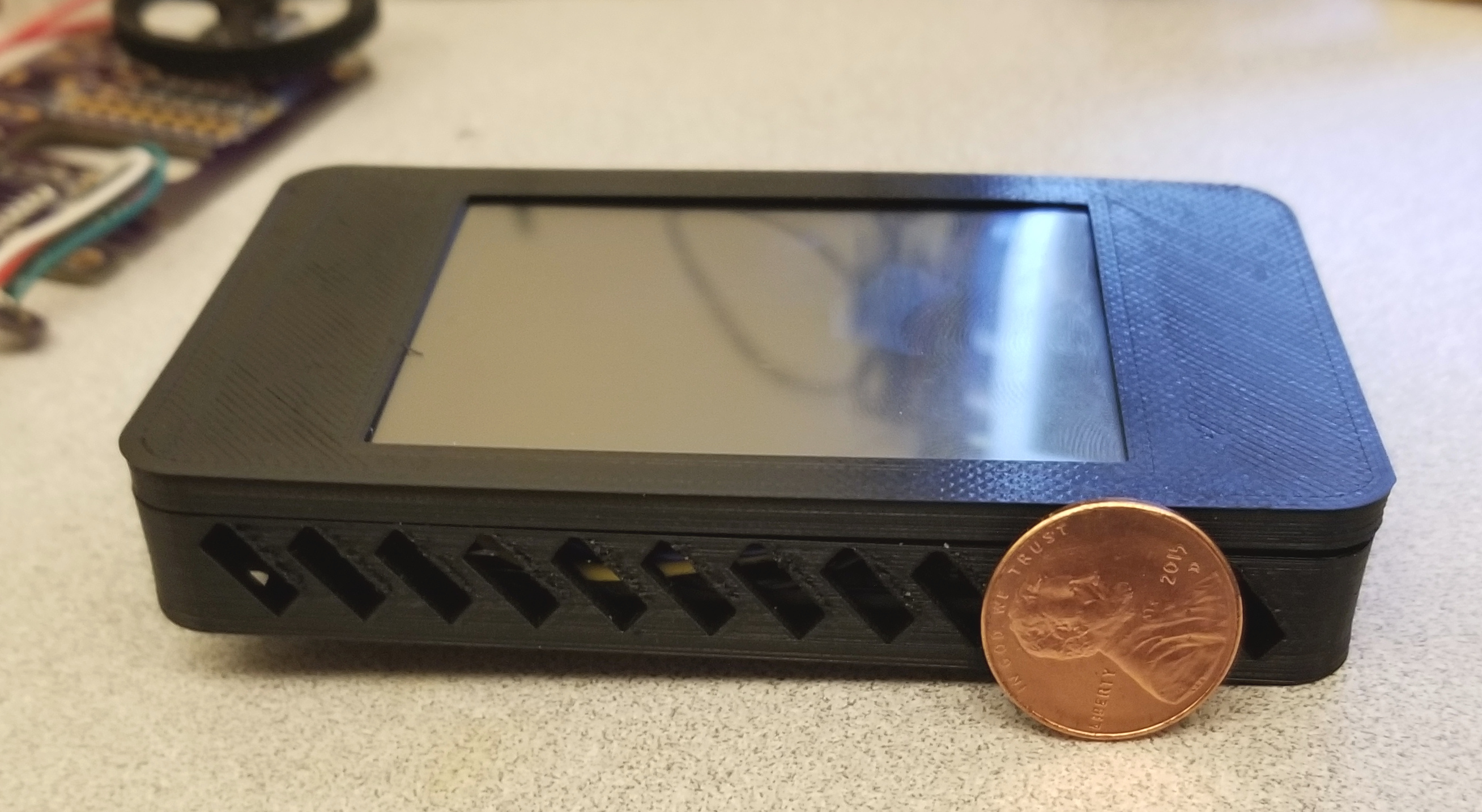 2018 Model: The new model was redesigned with a cooler switching regulator (~20mA idle, with a dim screen), smaller ($16.50 from OSHPark) more options for the temp/RH sensor, and the rotory encoder was removed, but has a header for an external encoder or buttons. The only difference in connections is the SCL/SDA were accidentaly reversed on the onboard SHTxx chip. Pics should be at the bottom.