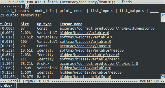 Tensorflow has a inbuilt debugger which can debug during the training as well as generating the graphs.