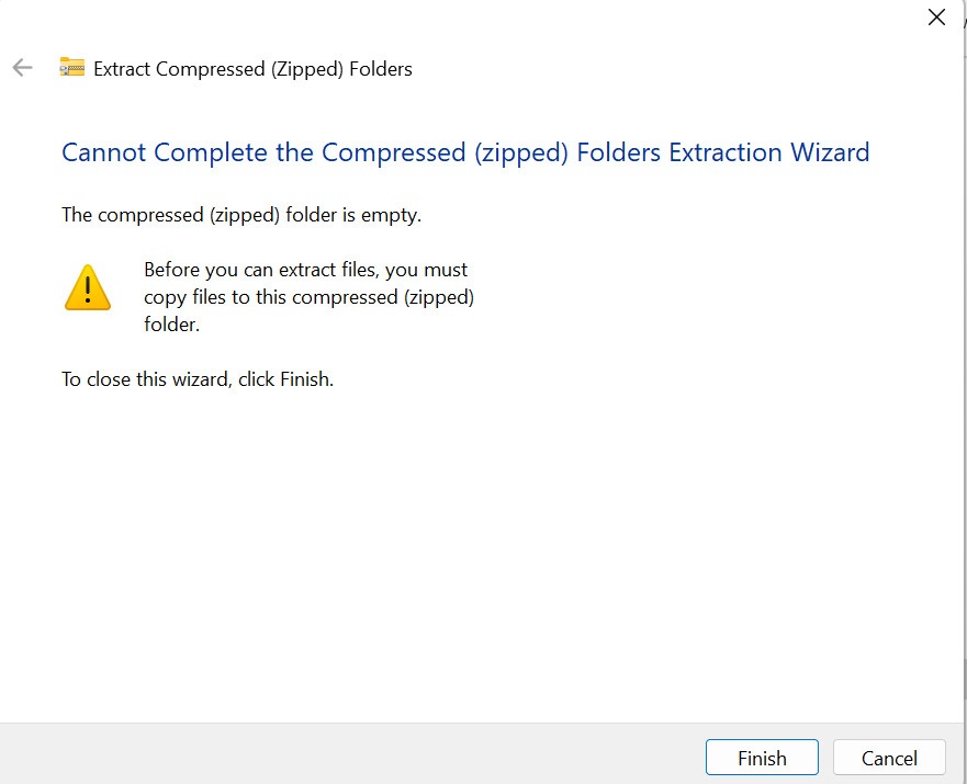 When I tried to unzip it, I got this Warning. I thought wrong file extension/wrong bit or mistake structure causes this problem.