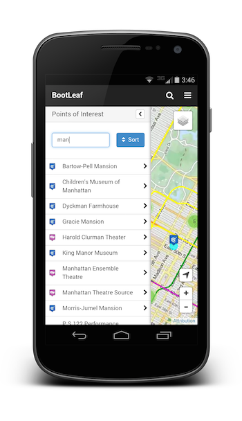 - Responsive sidebar feature list with sorting and filtering via list.js