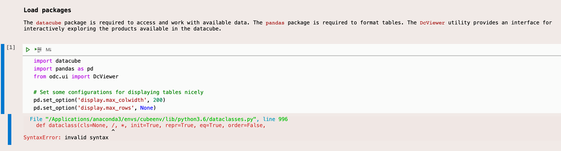 I had manually installed the datacube and odc packages. But it still doesn’t work due to the dataclasses issue.