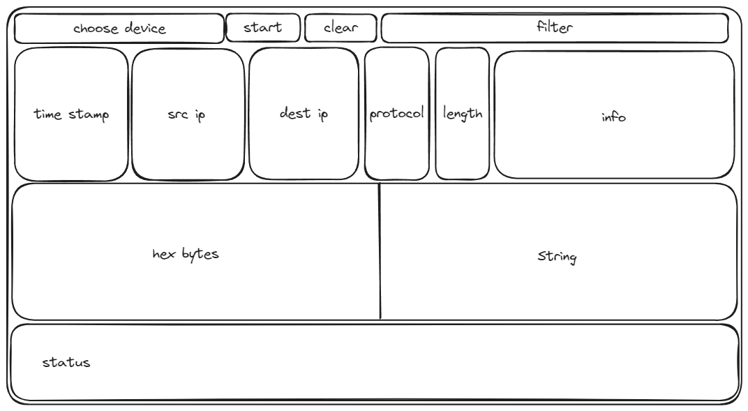 status:表示抓包状态,分为 “加载接口,当前抓包暂停中...” 和 “当前接口:[接口信息],抓包中...”