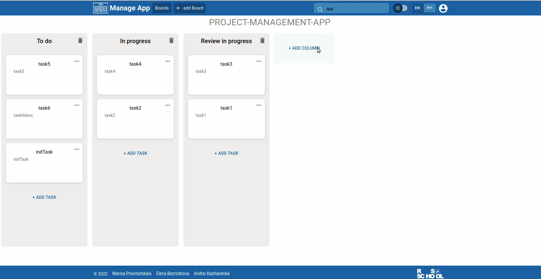 Three-person team project for streamlining project management processes ("Trello" analog)